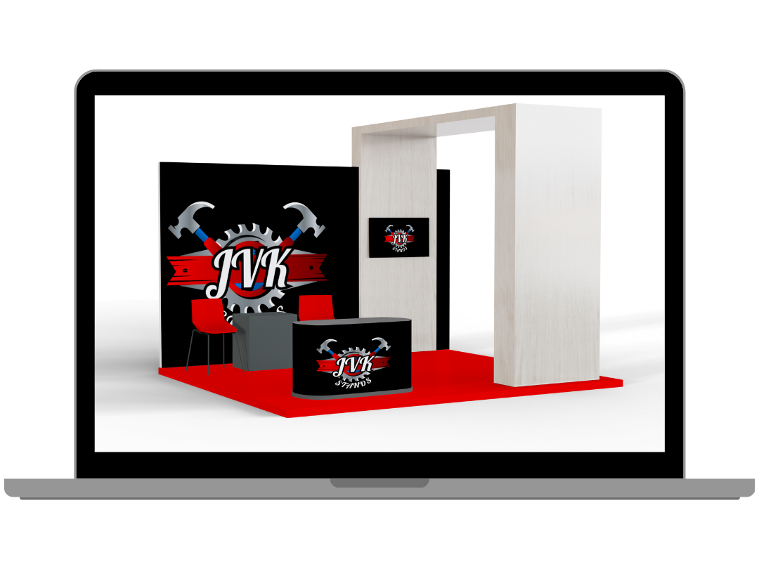 QUANDO ESTIVER SATISFEITO COM AS EDIÇÕES, SEU PROJETO ESTARÁ PRONTO PARA IR PARA A PRODUÇÃO. SEU STAND SERÁ CONSTRUÍDO E MONTADO.